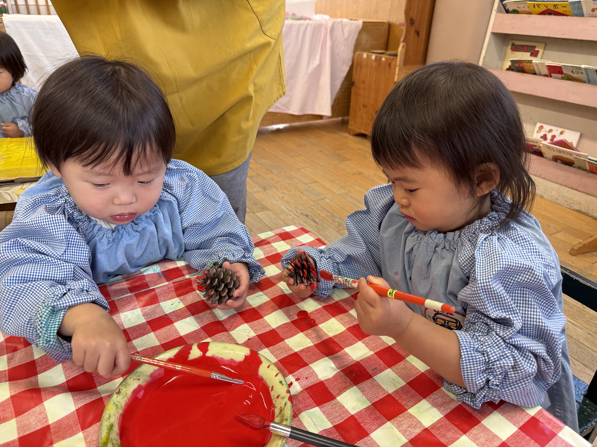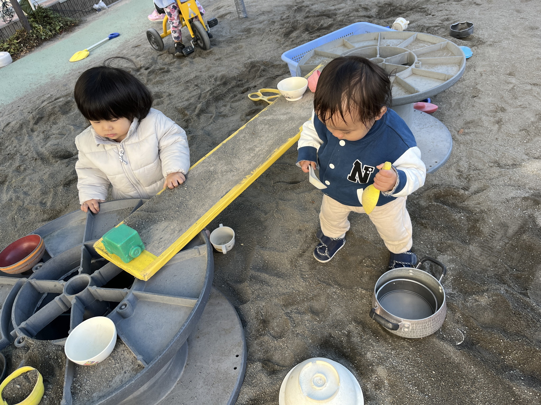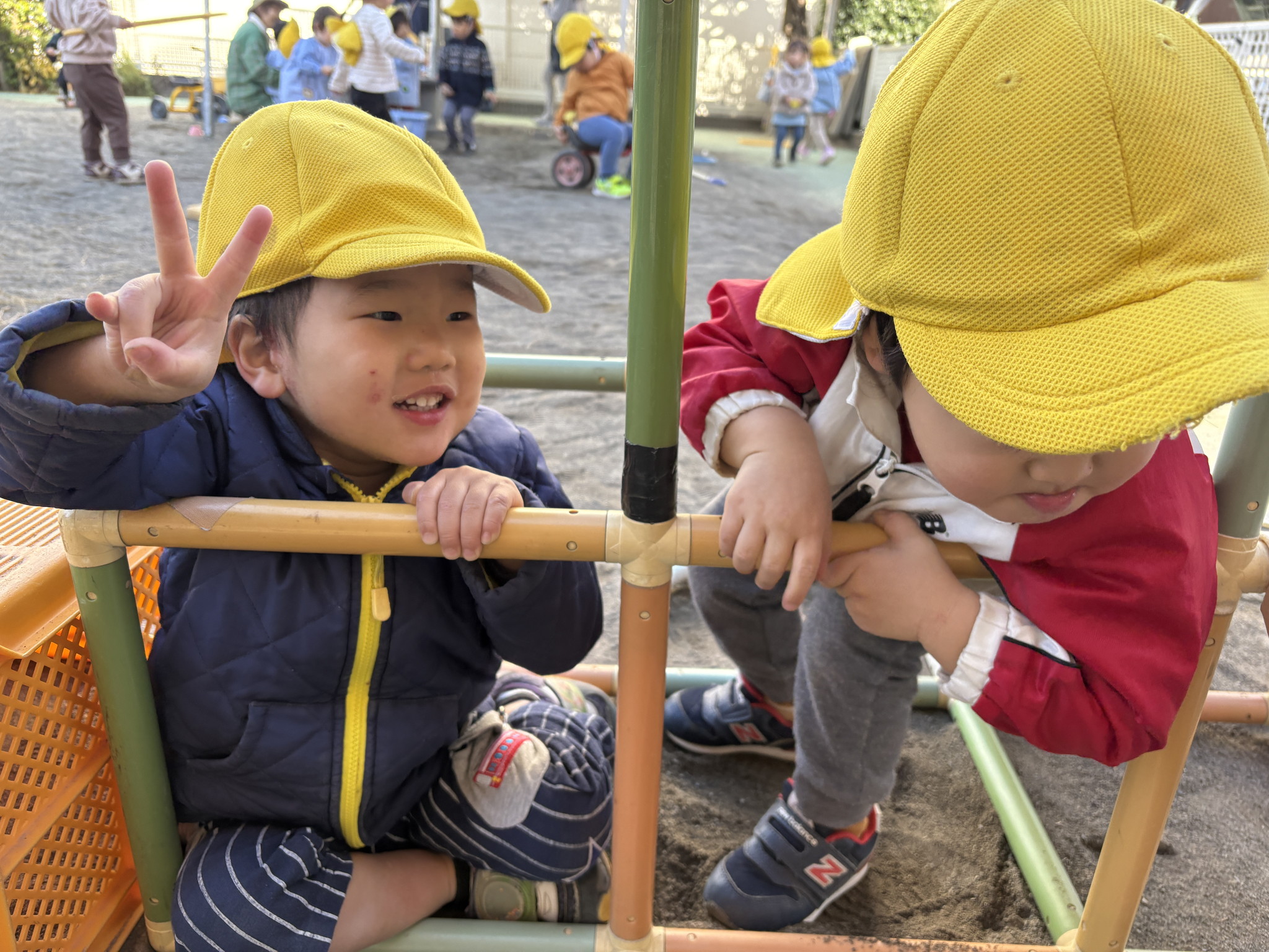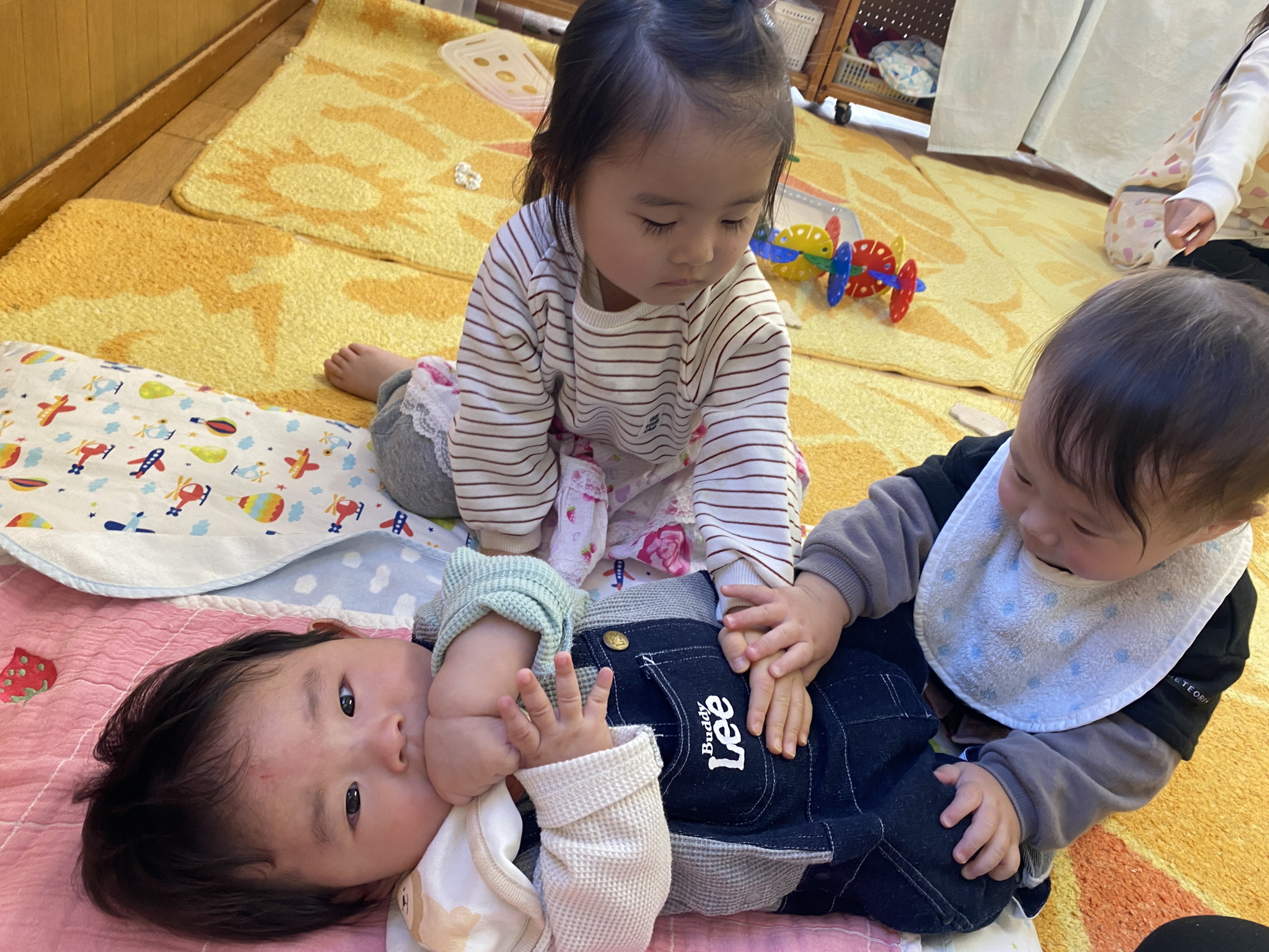 【 ひよこ 】 お散歩へLet’s GO! 葉っぱの上を通ると“ザクッザクッ”って音が鳴るね 園庭でも仲良く♪ 何やら製作中・・・ おーい! まてまて~ 一緒にあーそーぼっ!