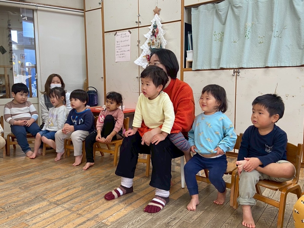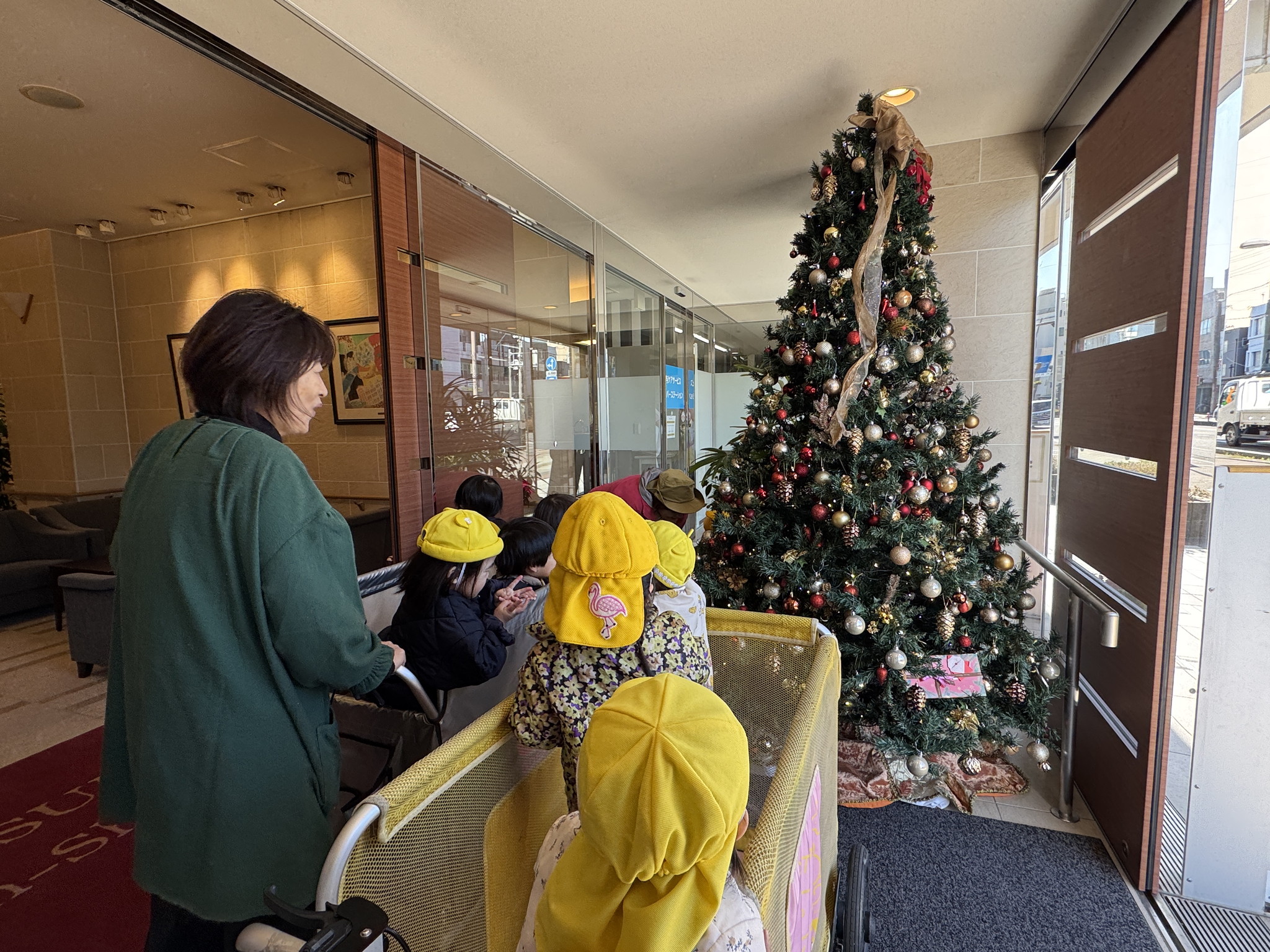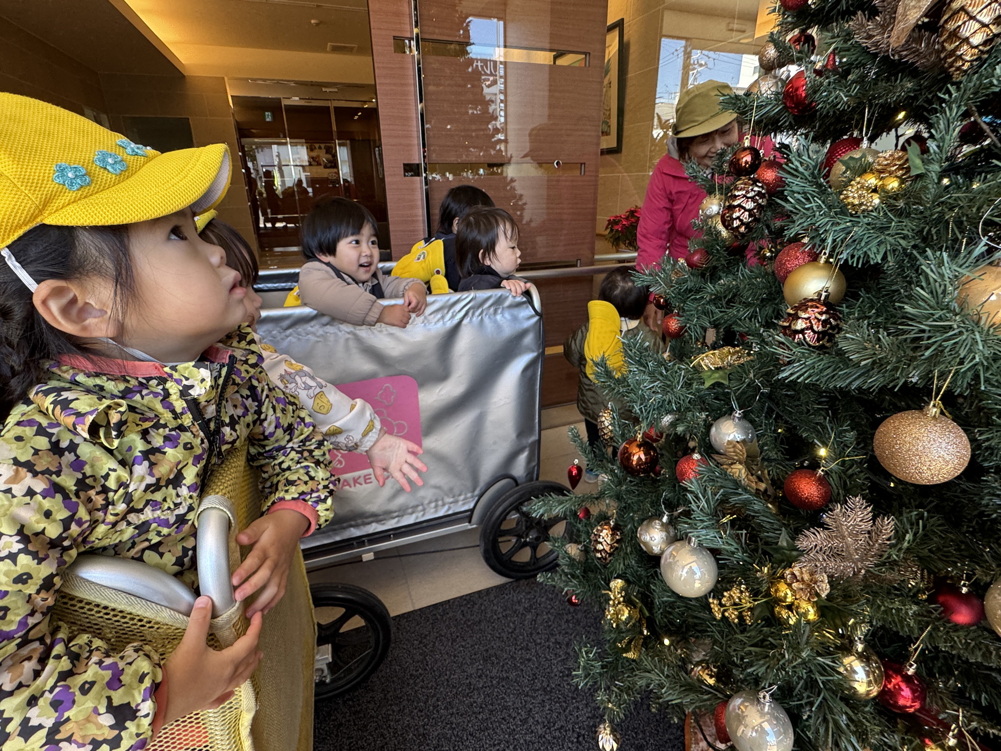 【 あひる 】 大きなクリスマスツリーを見せてもらいました わぁ~!ピカピカだね 一緒に絵本読も~! 慎重に渡るよ