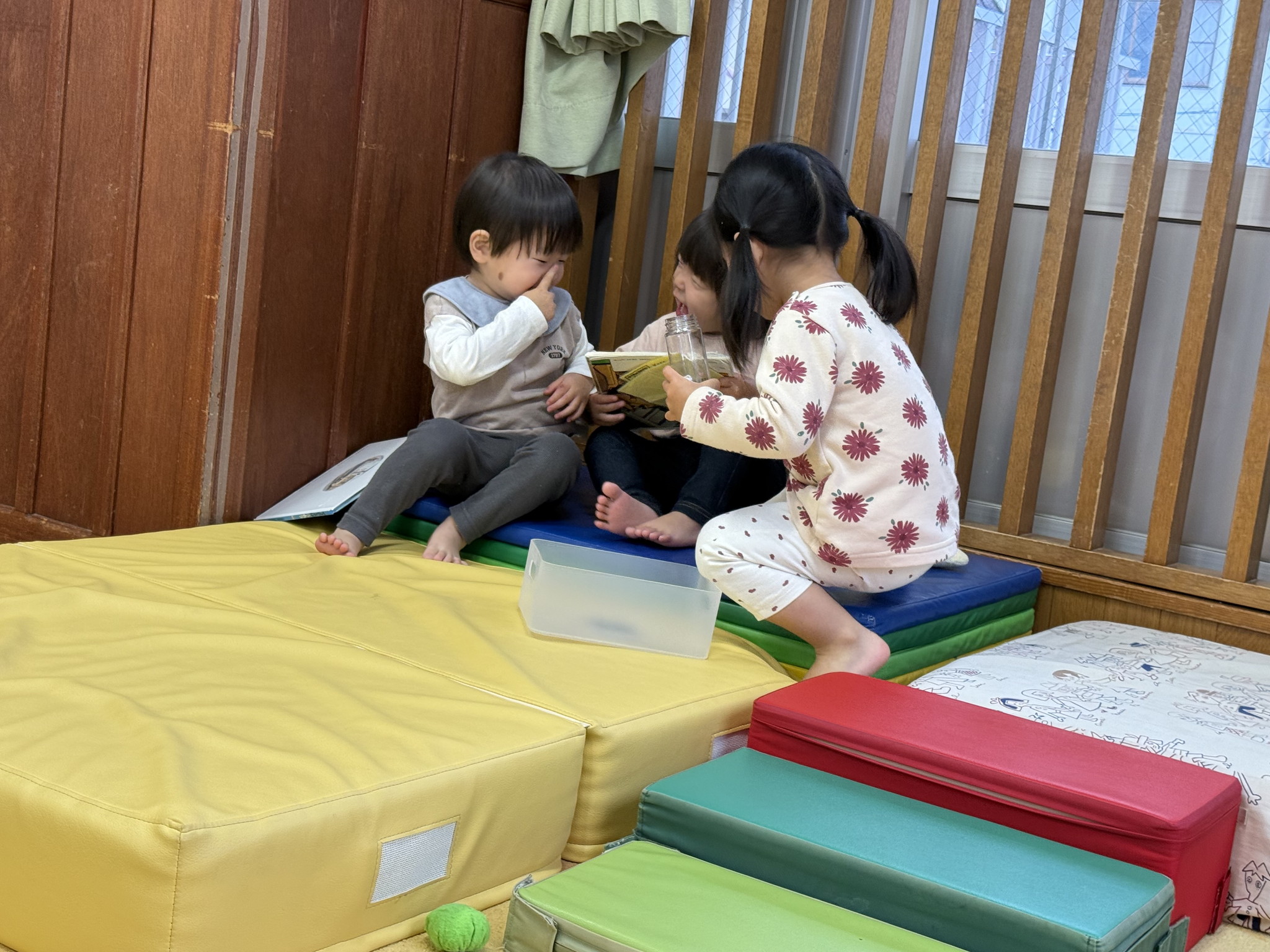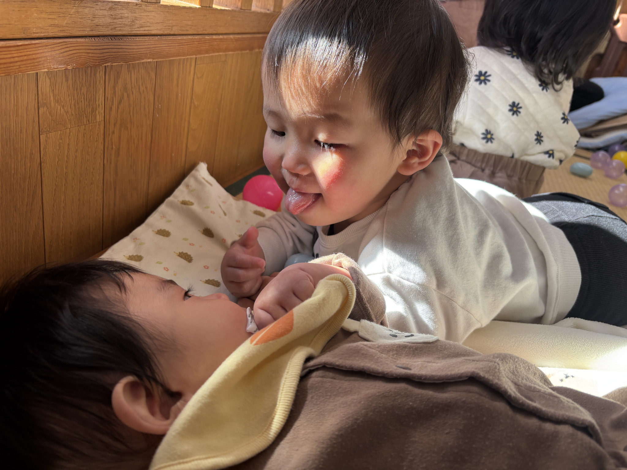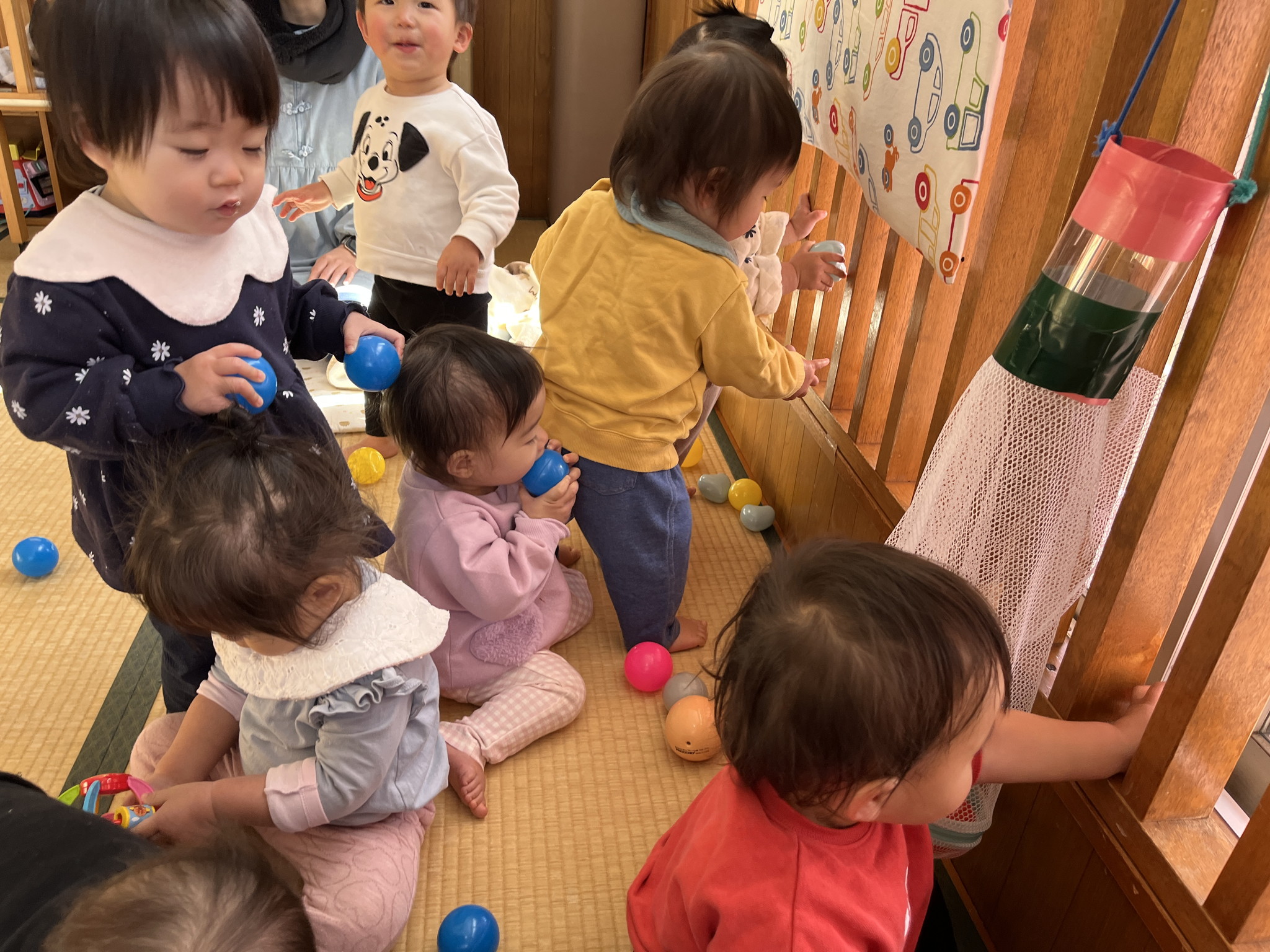 【 ひよこ 】 みんなでお散歩に行ってきました♪ 今日はちょっぴり寒かったけどたくさん動いて遊びました! べー^皿^ ボールあそび上手上手! 私もお膝に座りたいの~!