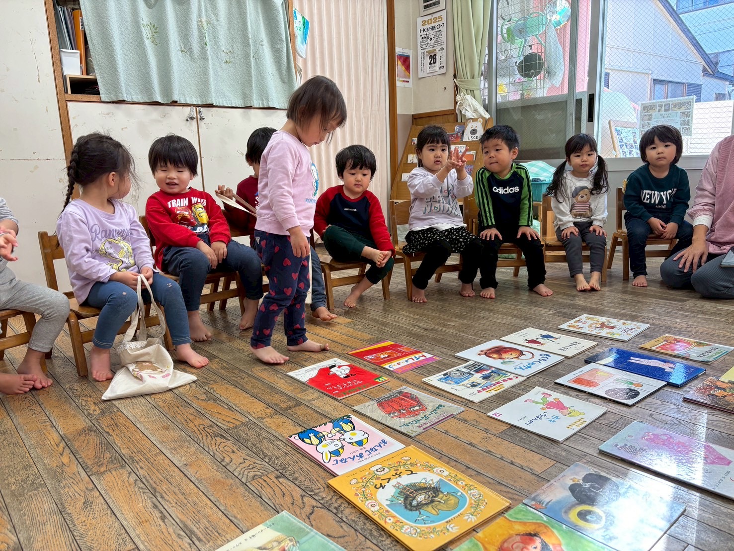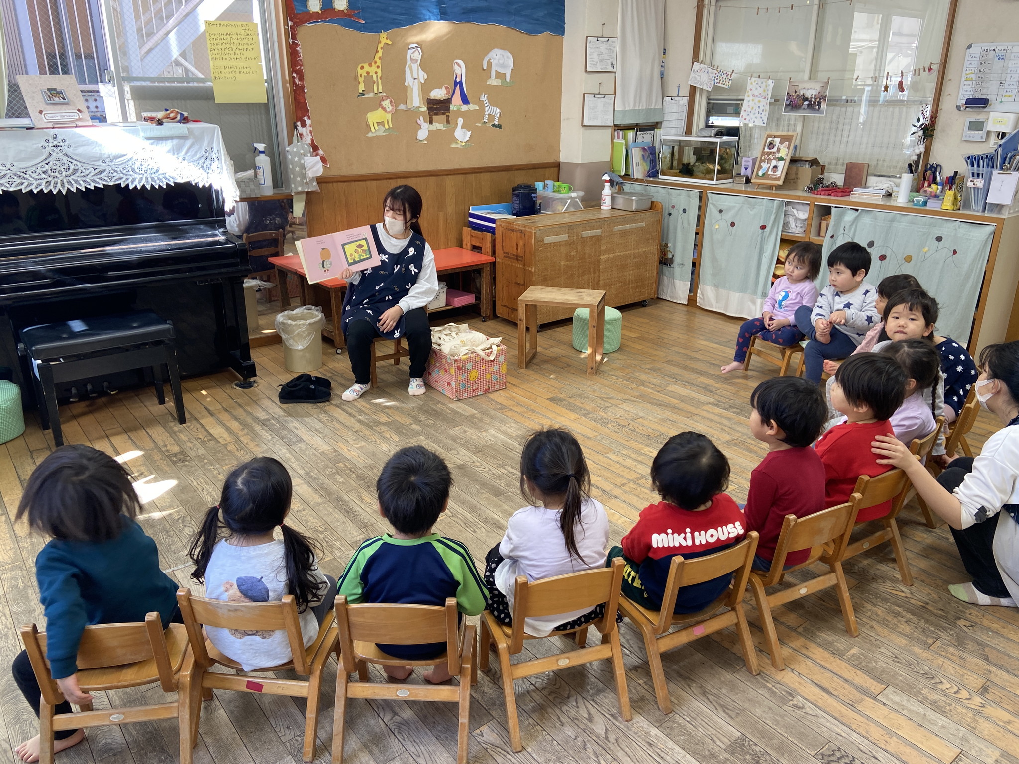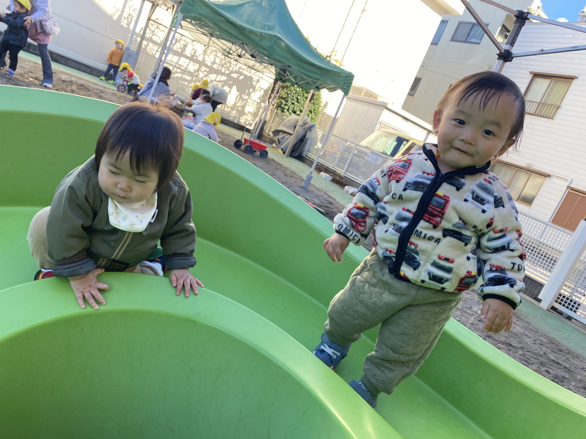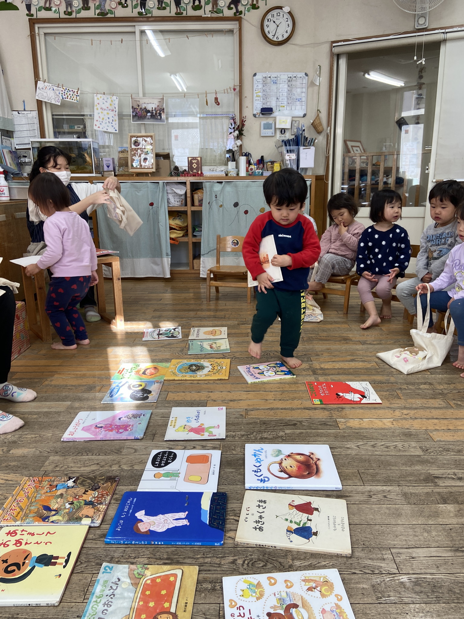 【 ひよこ 】 2人で仲良く絵本TIME 私はじっくり絵本TIME いただきまーす! くるくる上手に回すよ 手つなぎでお散歩♪ 園庭でも元気いっぱいあそびました 今年もありがとうございました! 来年もたくさんあそんでたくさん寝て楽しくすごせますように…♪