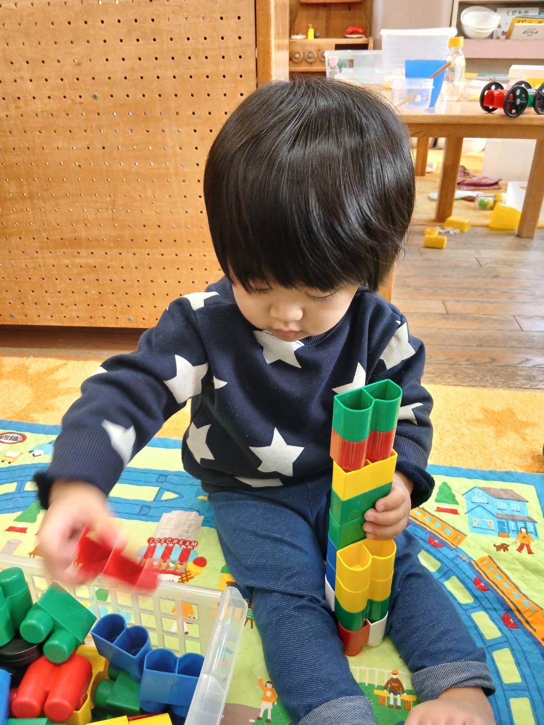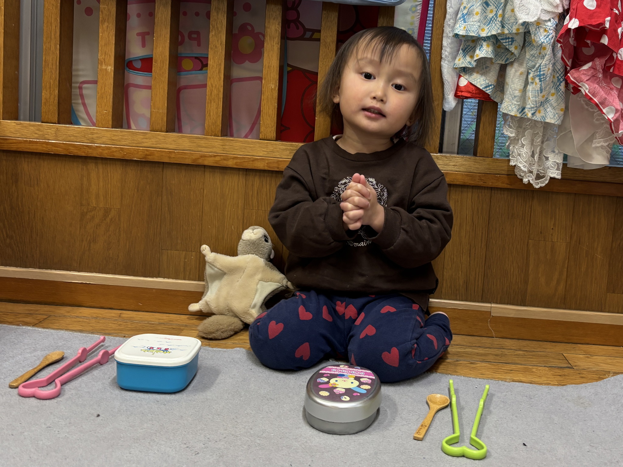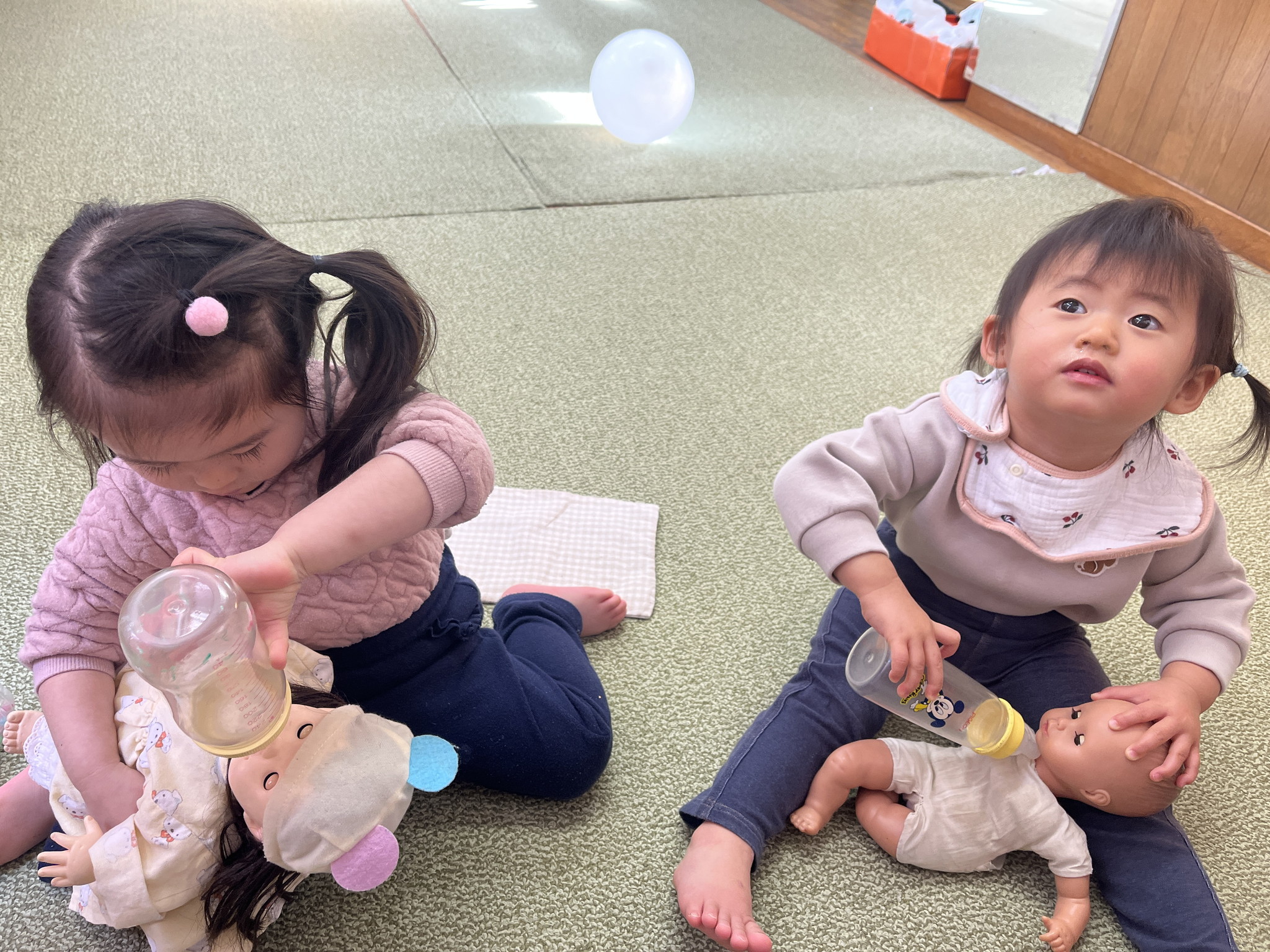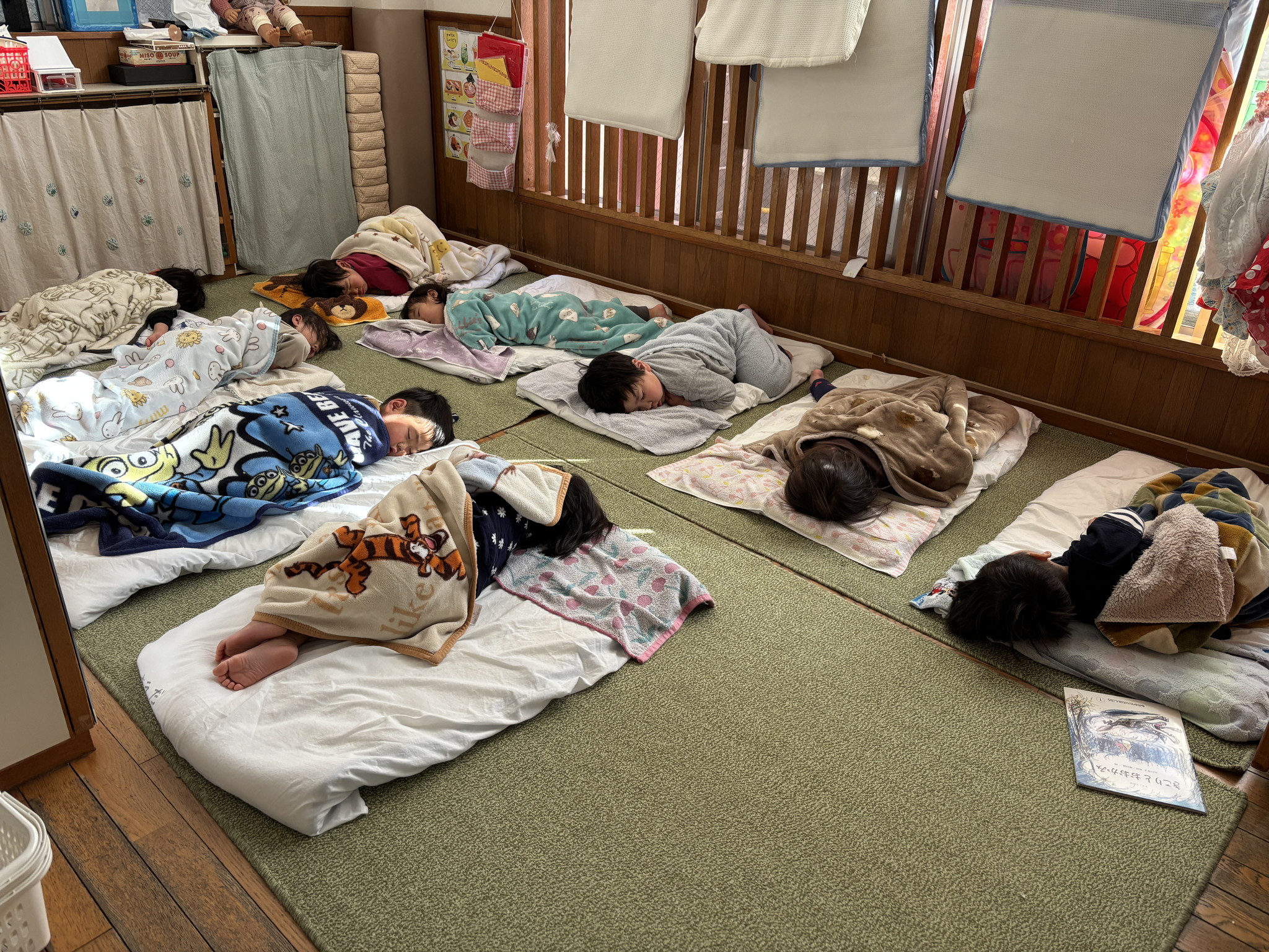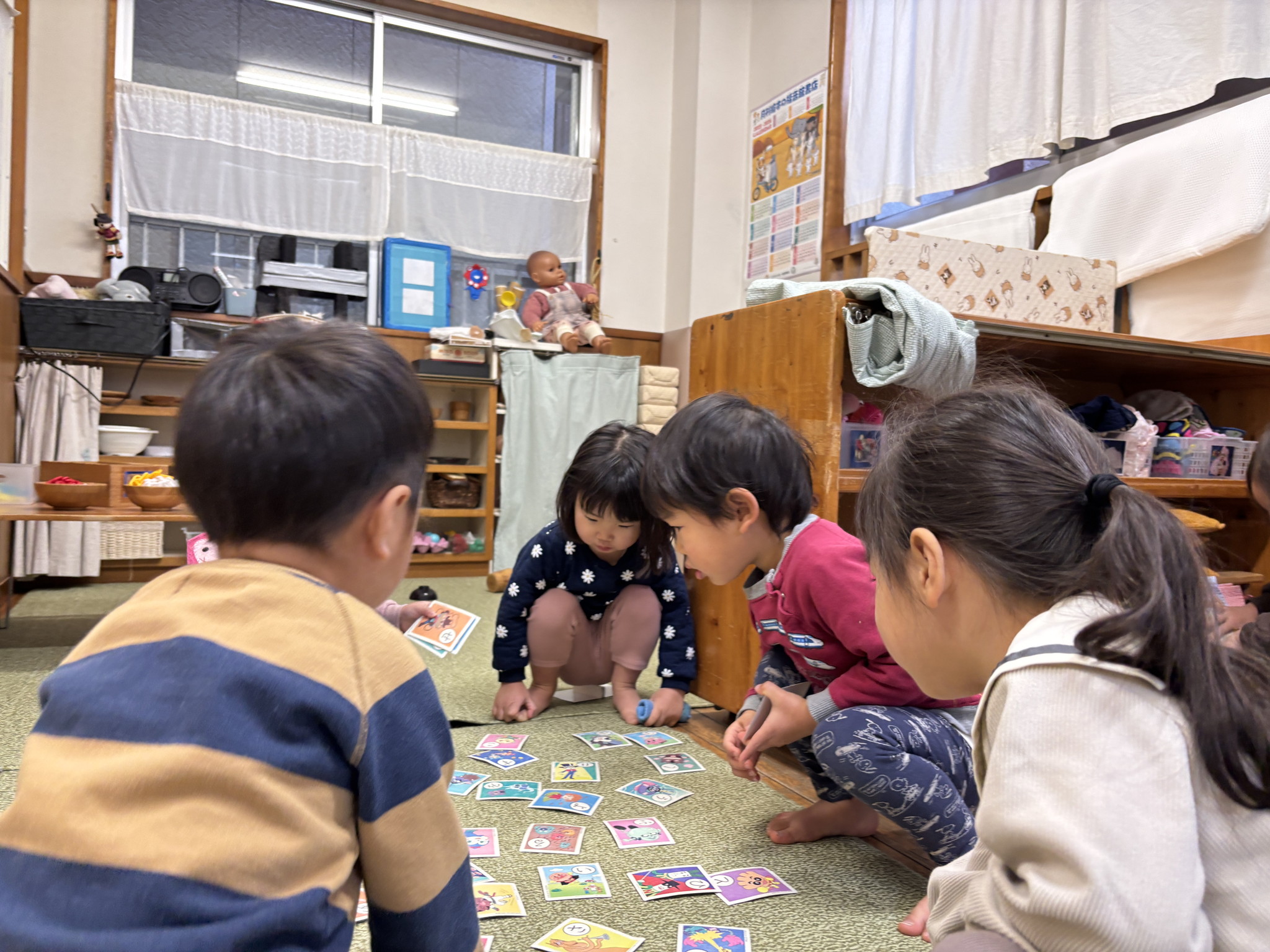 【 うさぎ 】 2人でサッカー! ボールをたくさん並べて一気に転がそう! いっぱい遊んでぐっすりお昼寝… ももんがちゃんとお弁当タイム かるたで真剣勝負!
