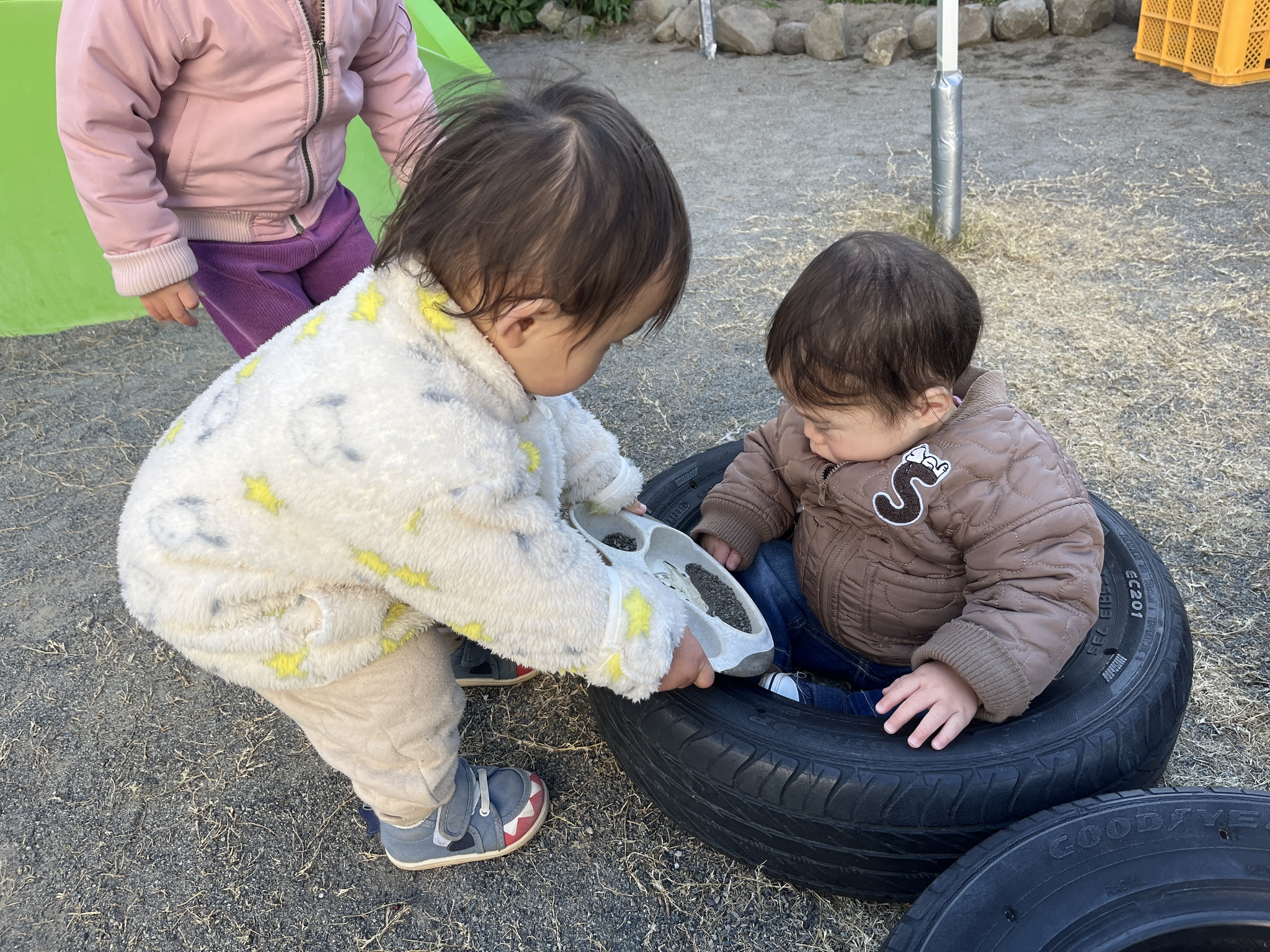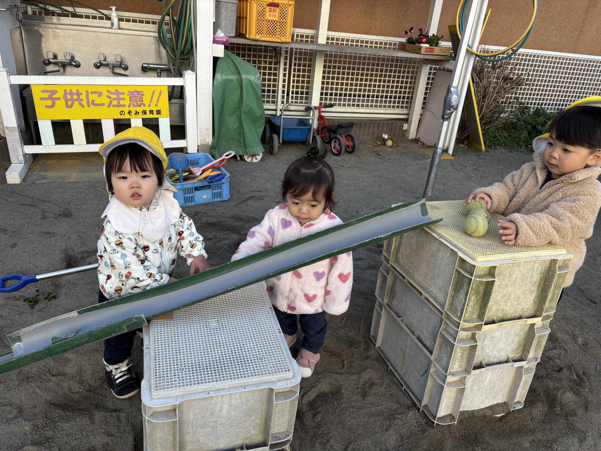 【 ひよこ 】 みんなでお散歩に行ってきました! 日向は暖かかったね♪ お友だちの肩を借りておやすみなさい… お兄さんと一緒にコロコロ~ ハイ、どうぞ