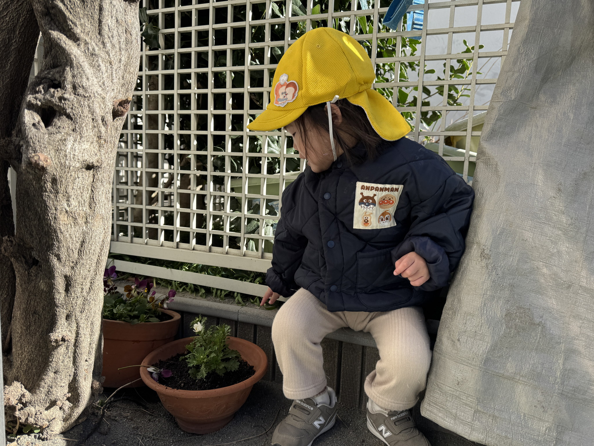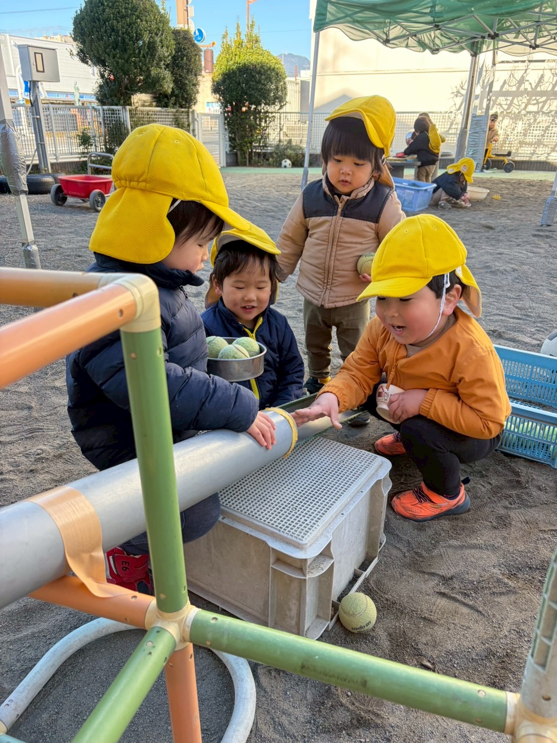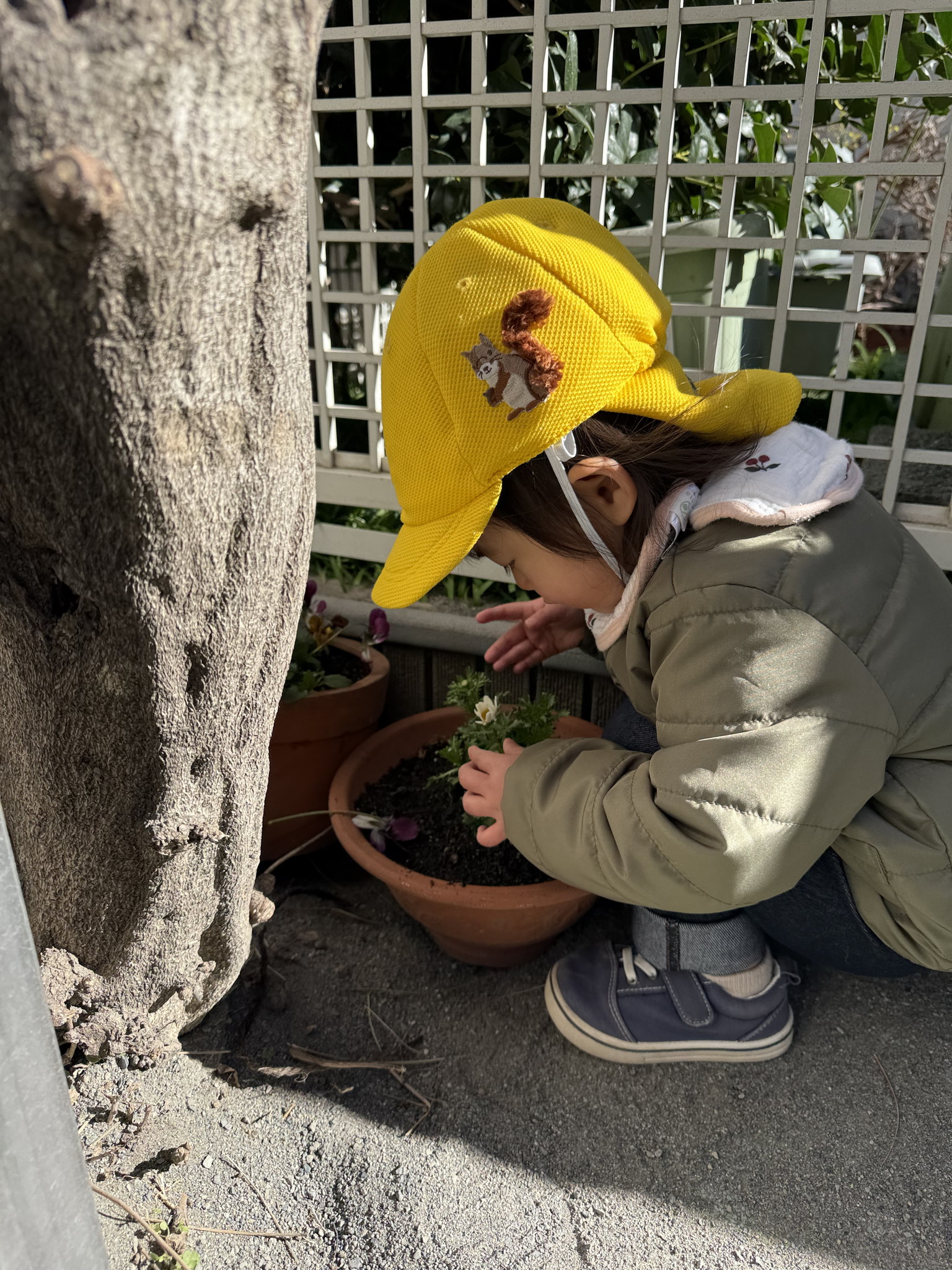 【 あひる 】 お花に水をあげたよ お花みつけた わぁーキレイに咲いてる! キレイだね ボールをもらって コロコロ転がすよ よーいドン お顔完成^_^ じっくりあそんでます! はい、ちーず☆