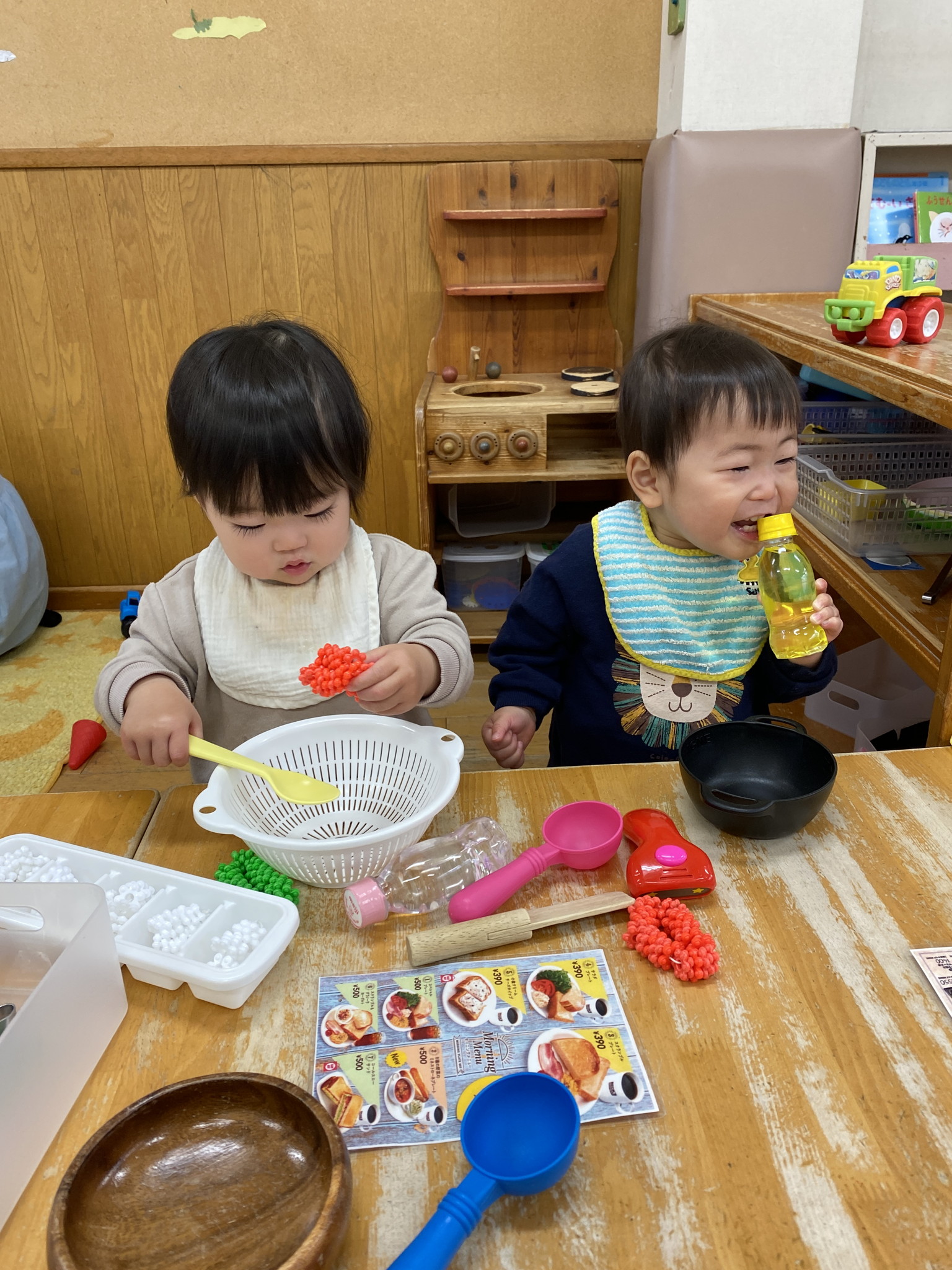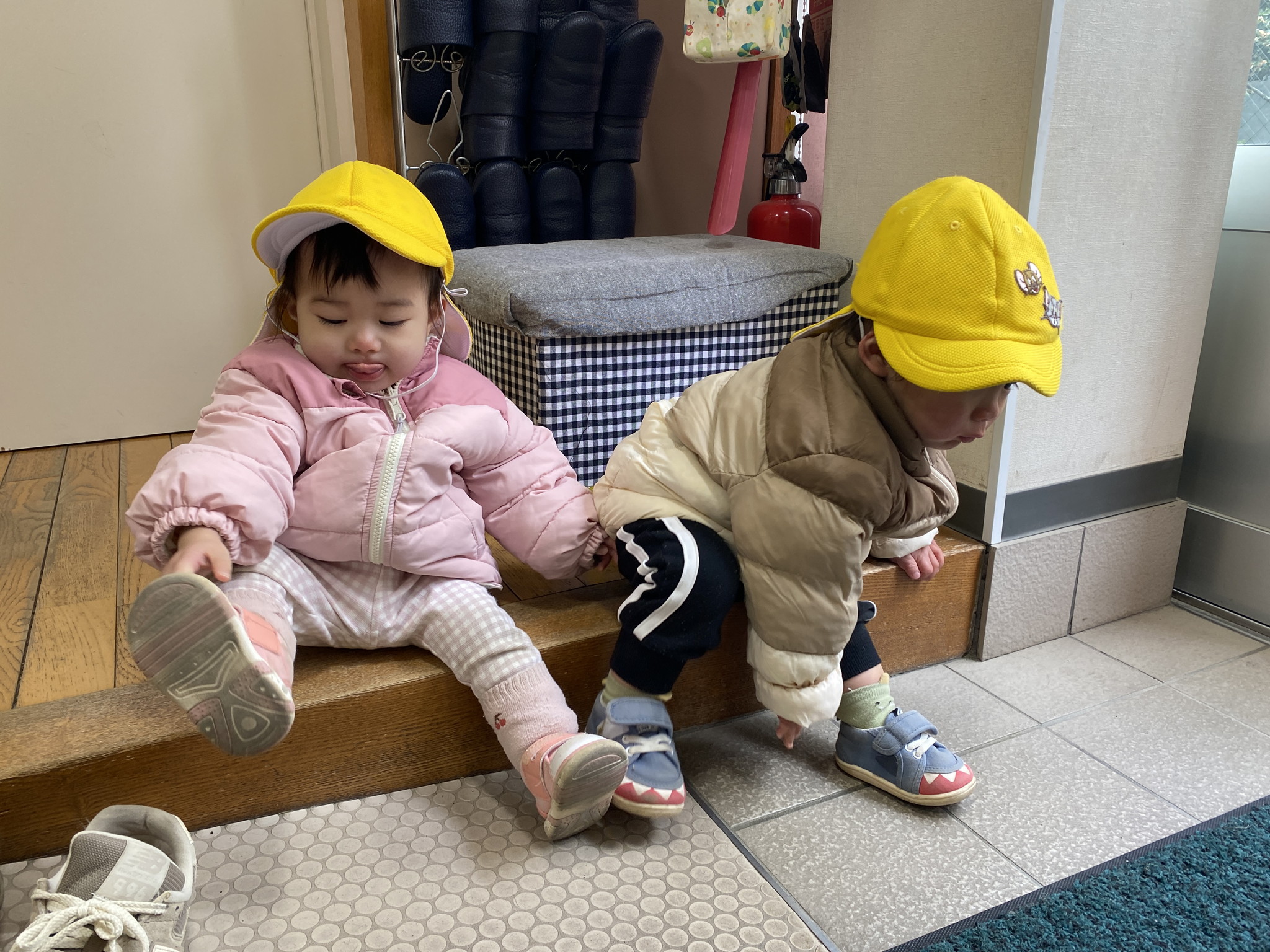 【 ひよこ 】 くつをはいてLet’s Goー! 園庭へ到着 いっぱいあそぶよ おへやでもおままごと♪ おもてなししますよー^_^