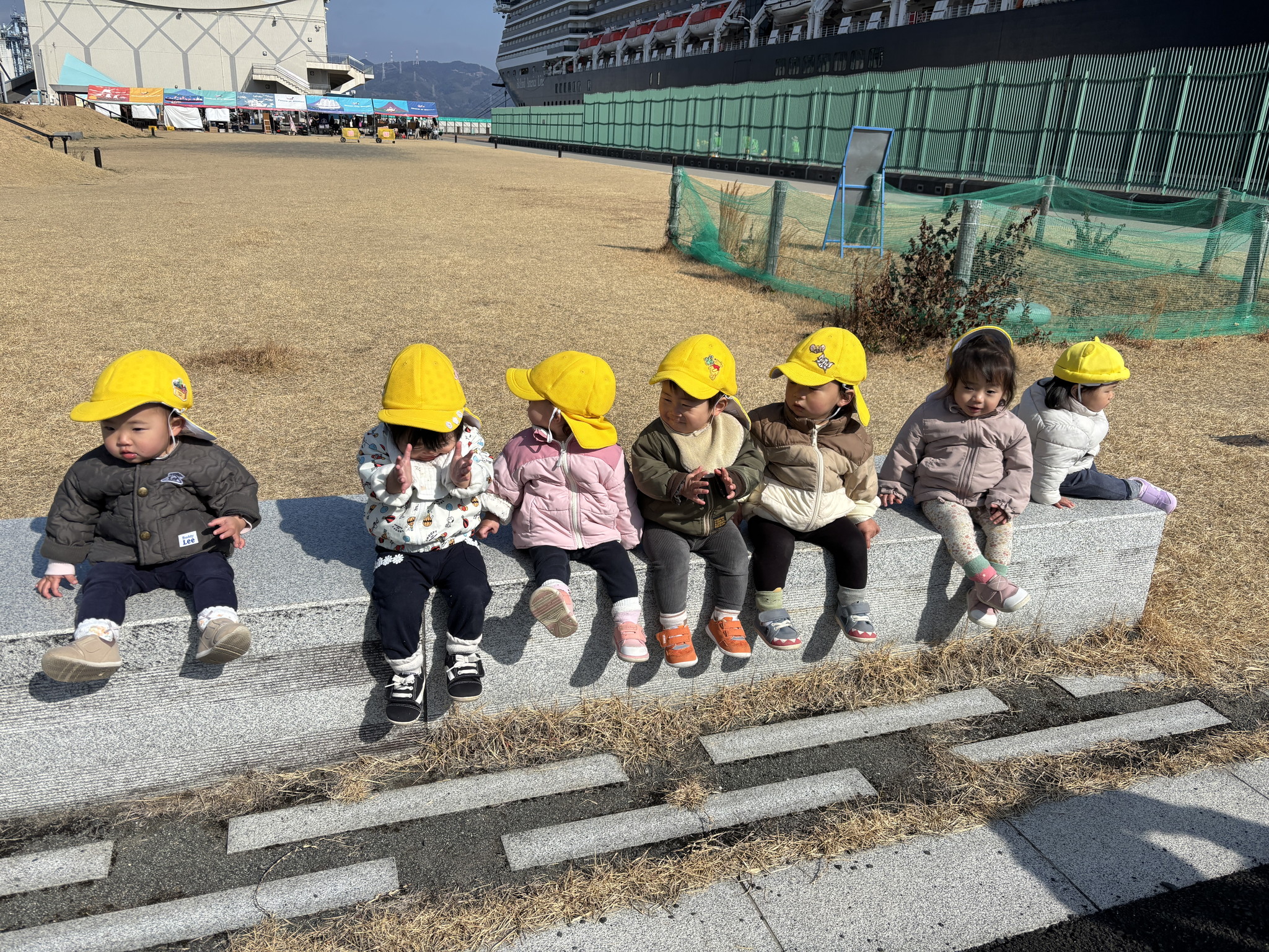 【 ひよこ 】 久しぶりに清水港に客船がやってきたよ! みんなでハイチーズ♪ 大きい船だねぇー お天気が良くて気持ちよかったね^_^