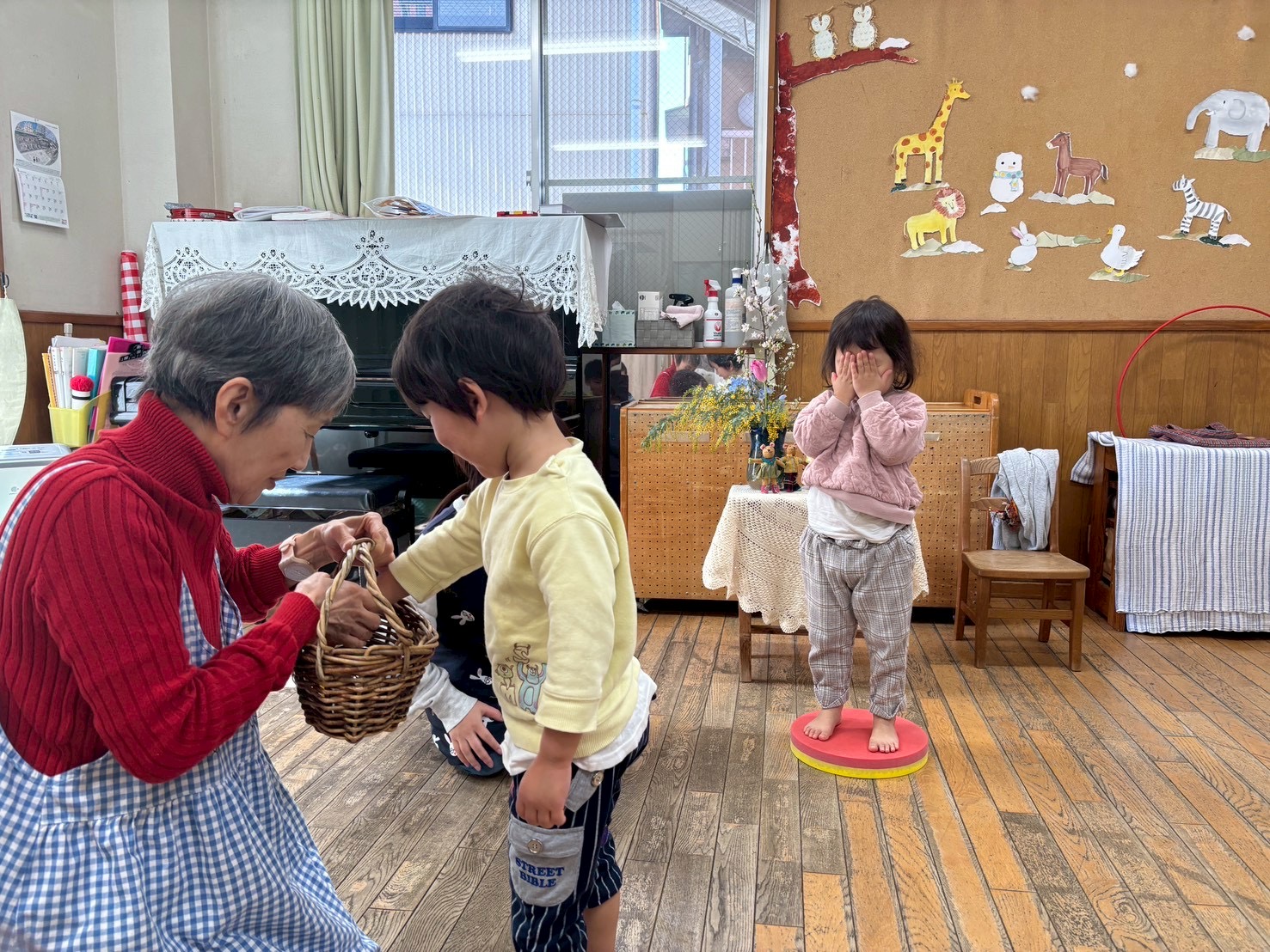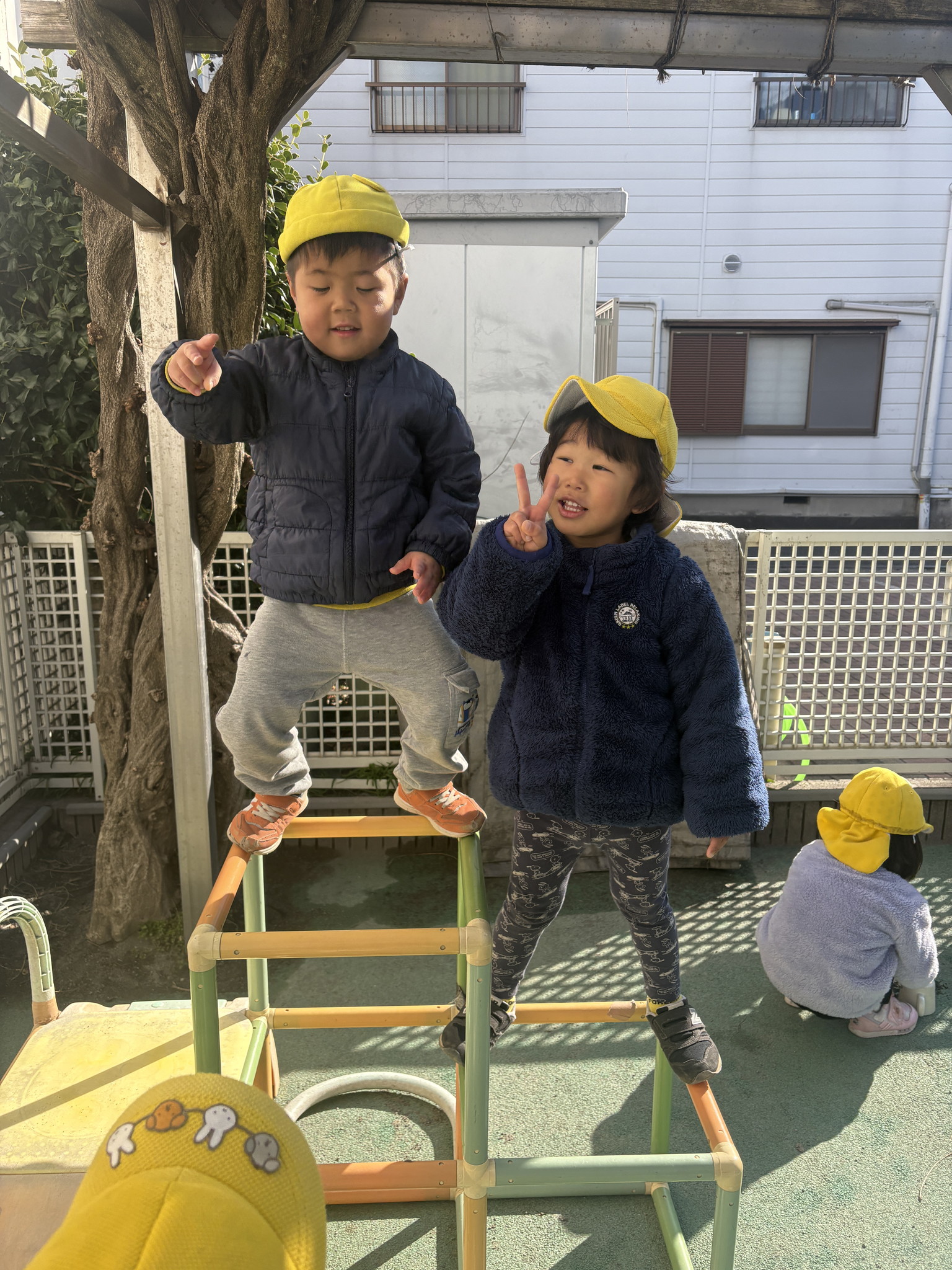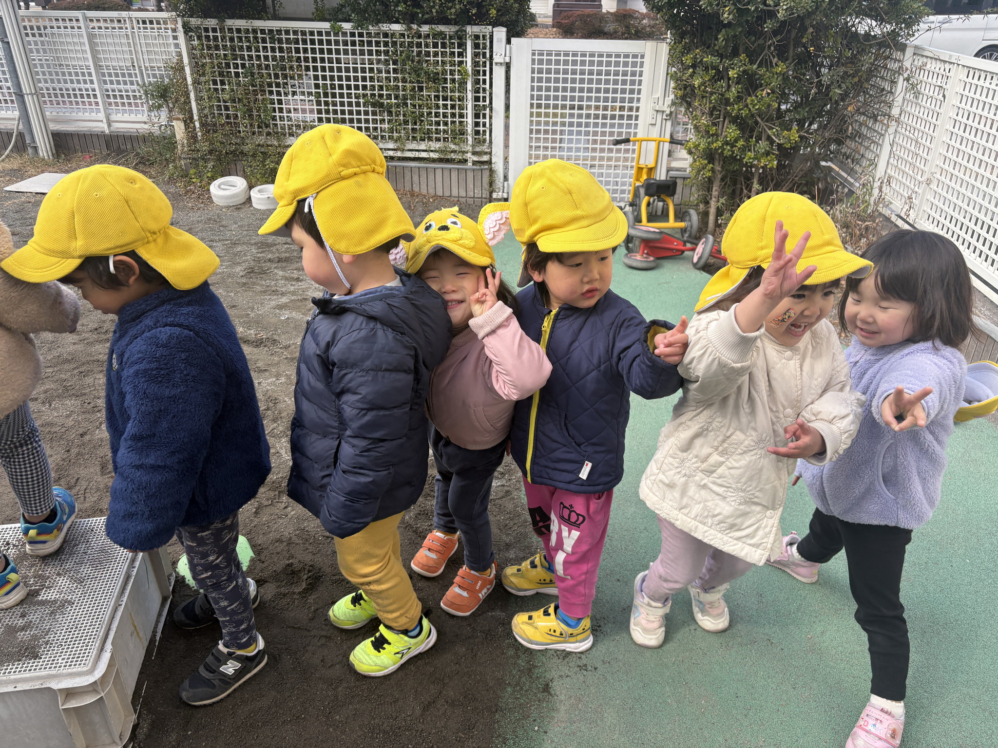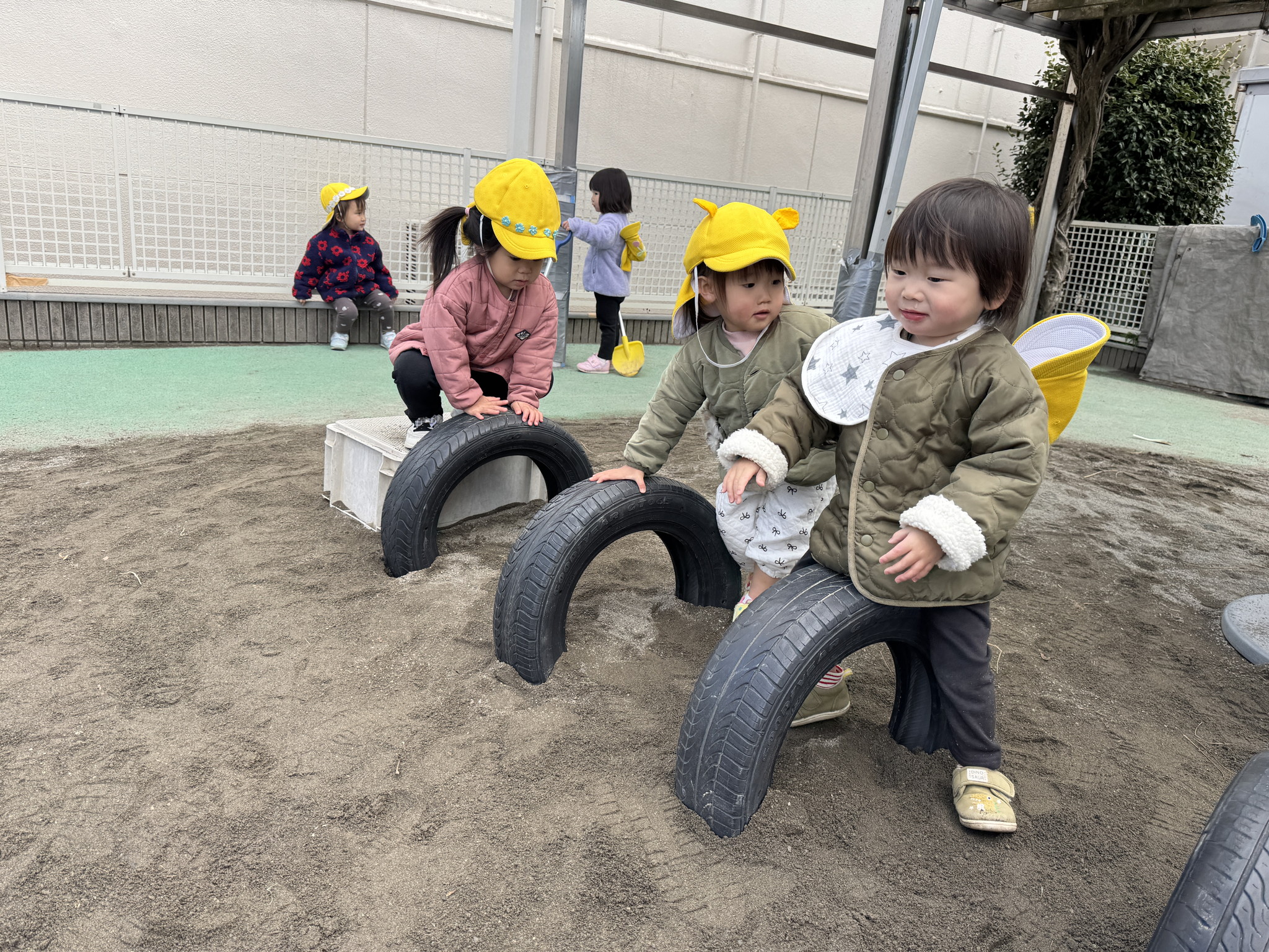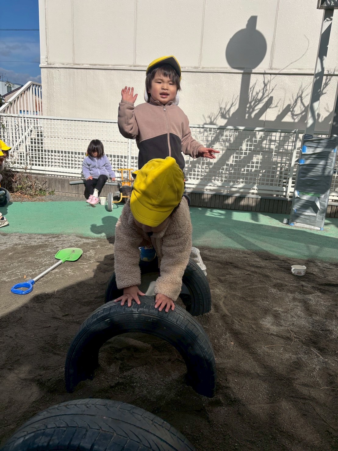 【 うさぎ 】 タイヤの上をトコトコ歩くよ バランスとれてます! こちらもなかよくBoys ポーズとってます お礼拝がありました!真剣に見ています 音をあてるゲームをしたよ^_^