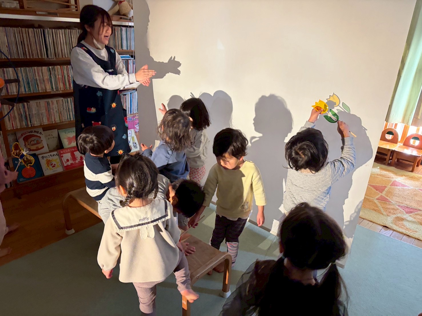 【 うさぎ 】 シルエット劇場を見てからの再びかげあそび! お友だちを当てるクイズをしたりして楽しみました! ひとつのところにギュっと集合^_^