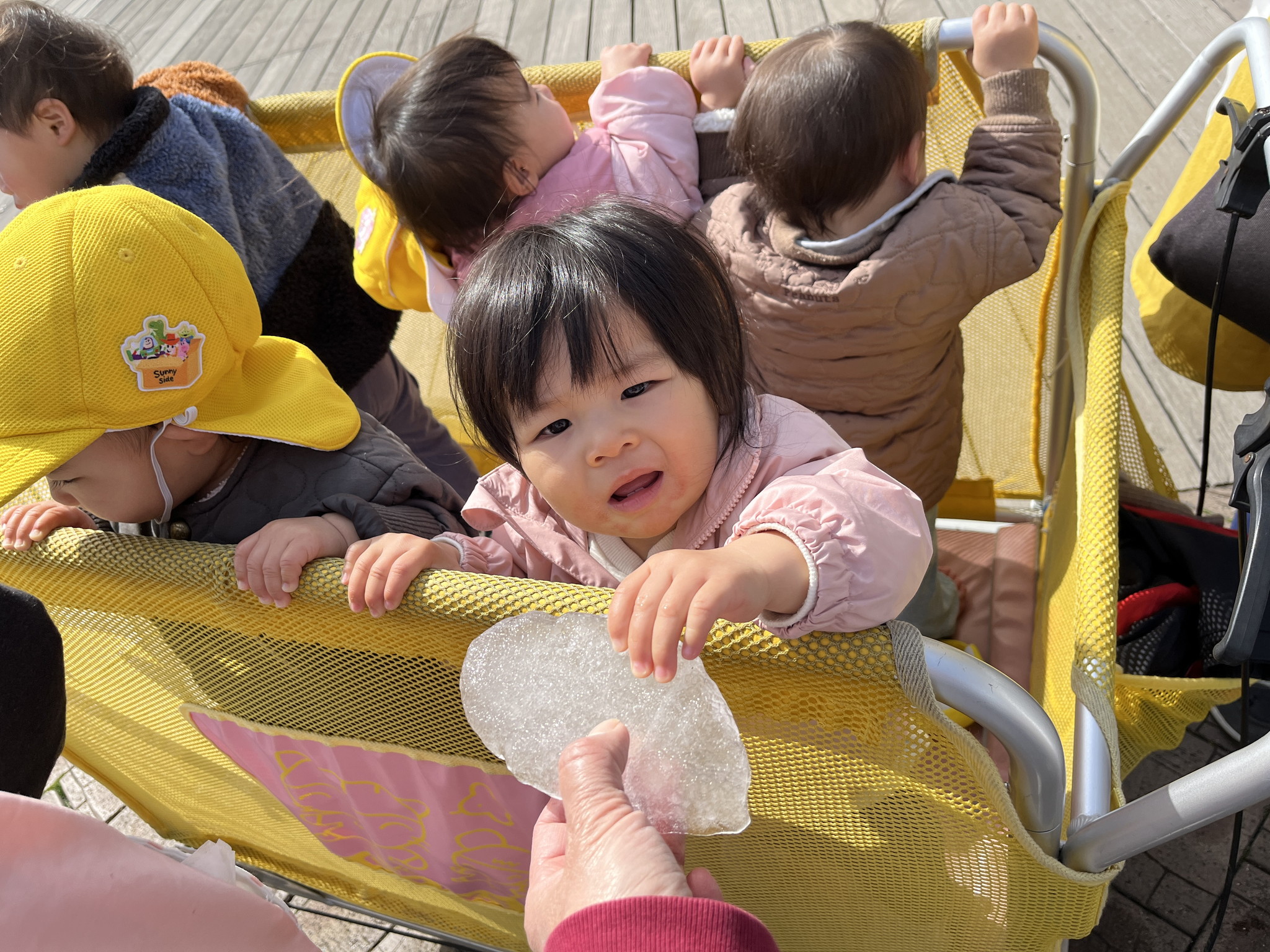 【 ひよこ 】 ばぁ~! 氷つめたーい よいしょよいしょ じゅうたん巻くよ ケーキ作るよ おひなさまはここ お~いぞうさーん ぽかぽかきもちいいね