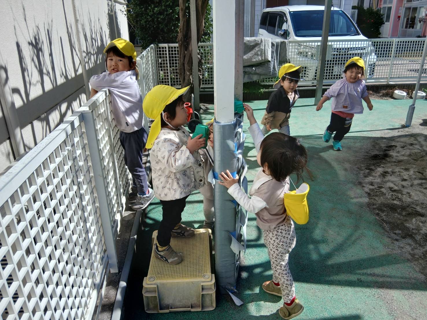 【 あひる 】 いらっしゃいませー!車屋さんです! 2人で出発 お絵描きしたよ おうちでのんびり~ 暖かくなって虫探しにハマり中です タイヤの上をトン!トン!