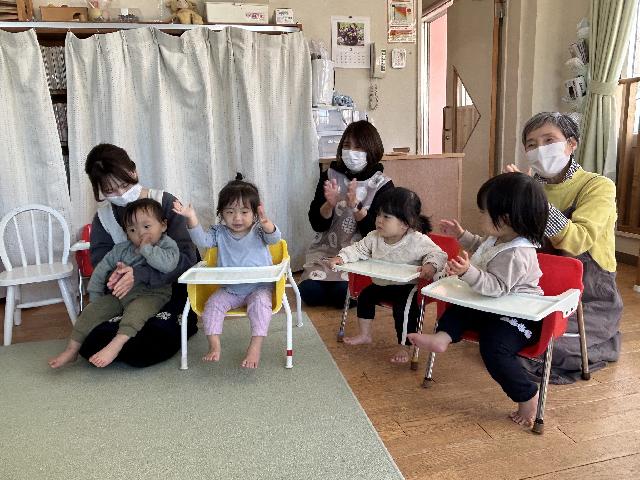 【 ひよこ 】 お返事はーい!園長先生とタッチ みんなでお祝いしたよ