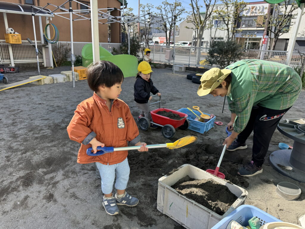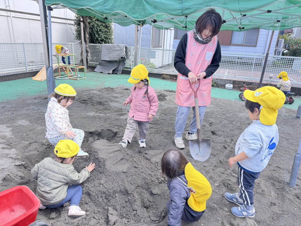 園庭ではみんなでお山をつくったよ