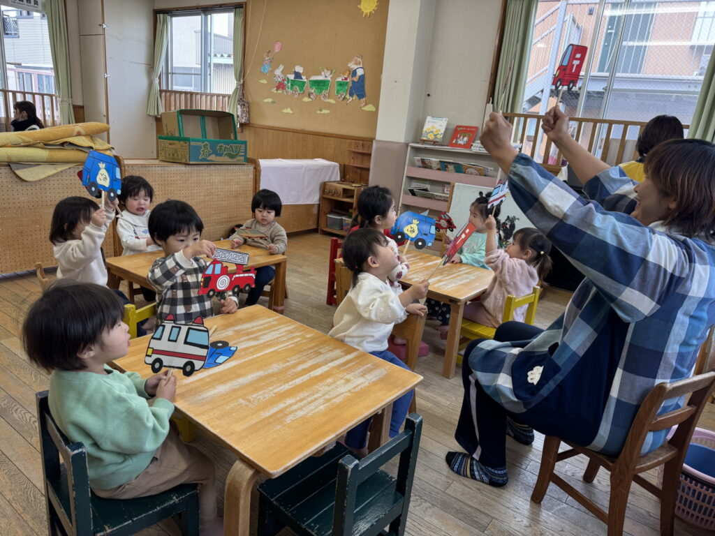 今日は”はたらくくるま”を歌ったよ