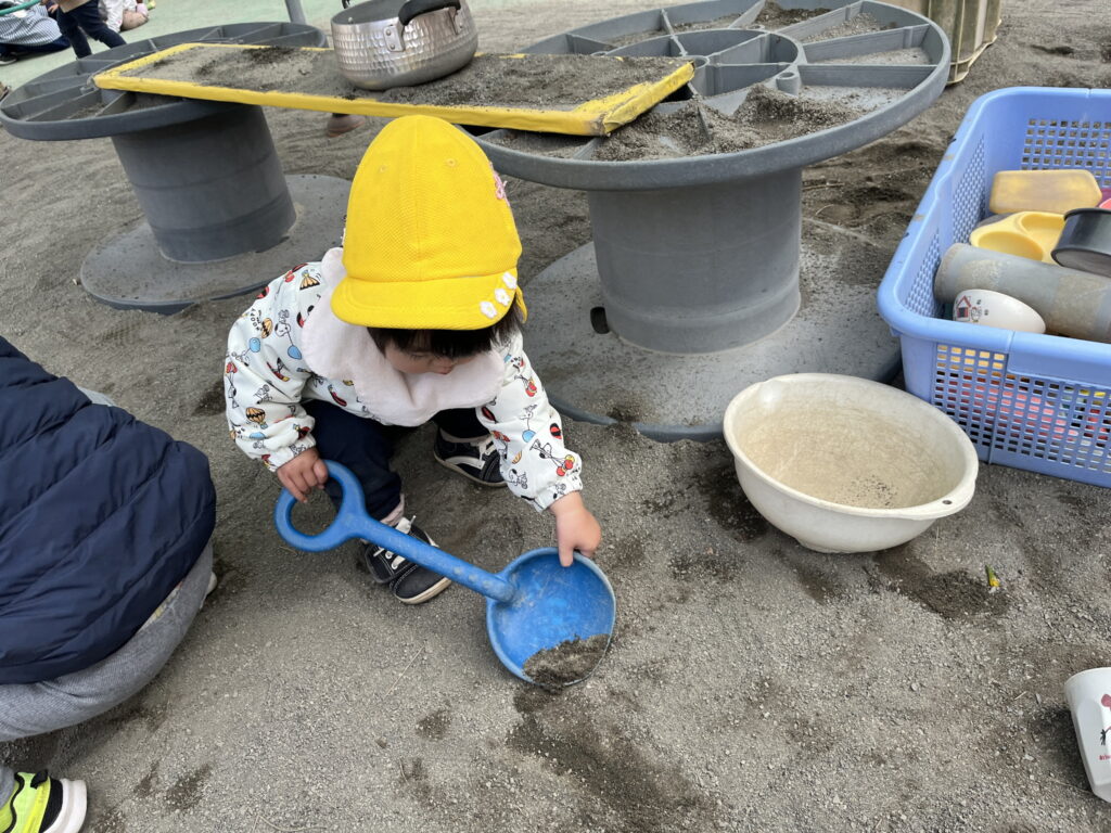 お砂をすくってよいしょよいしょ